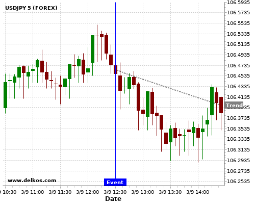 这个可能性是根据最近12次公布US Balance of Trade数据得出的,12次中有10次真实数据小于专家预期,这其中有9次导致USDJPY下跌。