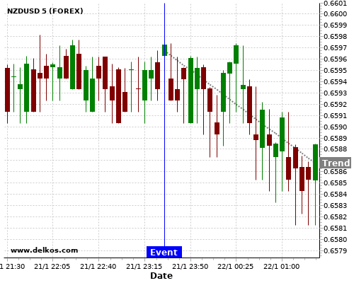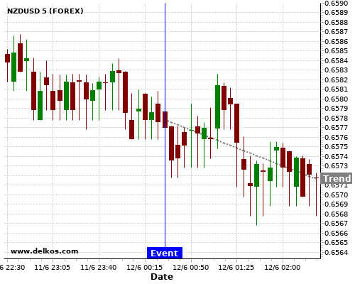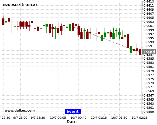 如果该数据小于专家预期,那么NZDUSD在消息公布之后的四小时内,将有71.42%的可能性会下跌。