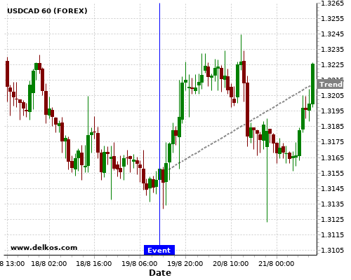 如果该数据小于专家预期,那么USDCAD在消息公布之后的四小时内,将有83.33%的可能性会上涨。
