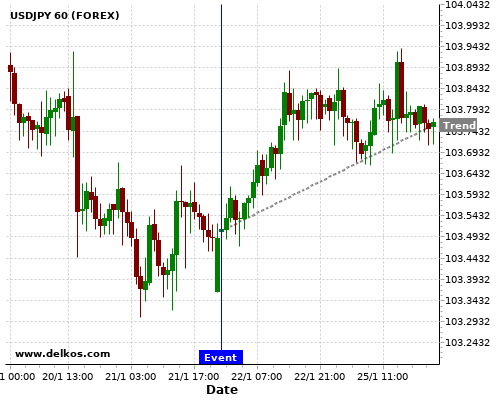 如果该数据小于专家预期,那么USDJPY在消息公布之后的四小时内,将有83.33%的可能性会上涨。