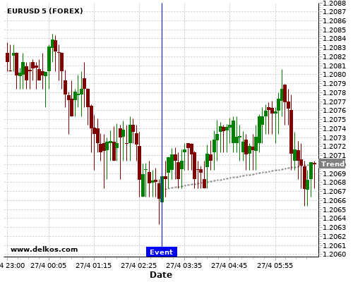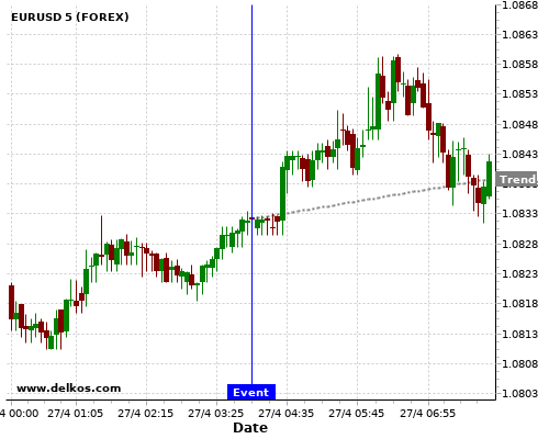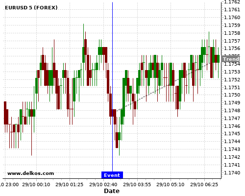 如果该数据等于专家预期,那么EURUSD在消息公布之后的四小时内,将有75%的可能性会上涨。