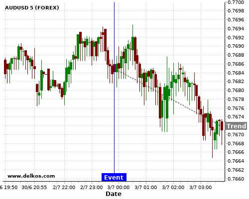 如果该数据大于专家预期,那么AUDUSD在消息公布之后的四小时内,将有83.33%的可能性会下跌。