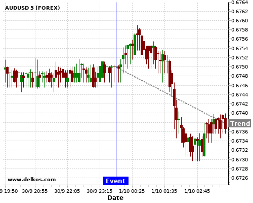 这个可能性是根据最近12次公布JP Tankan Large Manufacturers Index数据得出的,12次中有6次真实数据大于专家预期,这其中有5次导致AUDUSD下跌。