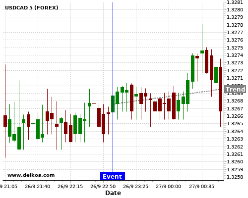 这个可能性是根据最近12次公布GB Gfk Consumer Confidence Final数据得出的,12次中有7次真实数据大于专家预期,这其中有5次导致USDCAD上涨。