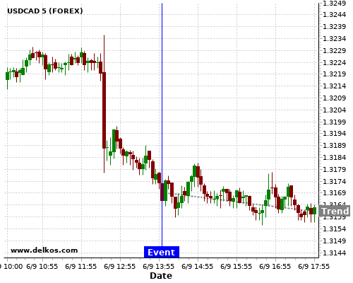 这个可能性是根据最近12次公布CA Ivey PMI s.a数据得出的,12次中有6次真实数据大于专家预期,这其中有5次导致USDCAD下跌。