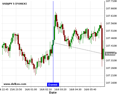 这个可能性是根据最近12次公布JP BoJ Interest Rate Decision数据得出的,12次中有12次真实数据等于专家预期,这其中有10次导致USDJPY下跌。