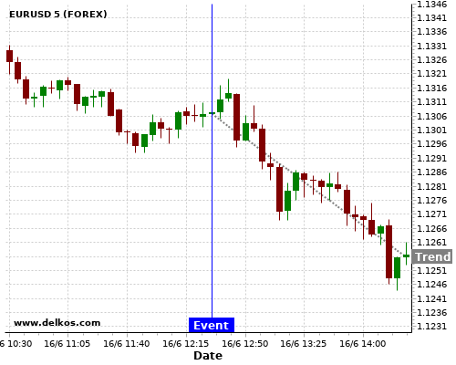 这个可能性是根据最近12次公布US Retail Sales MoM数据得出的,12次中有5次真实数据大于专家预期,这其中有4次导致EURUSD下跌。