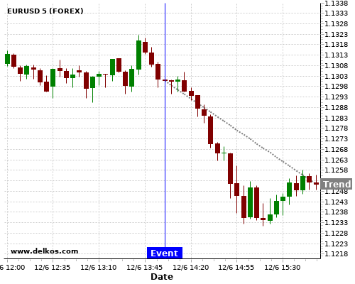 如果该数据大于专家预期,那么EURUSD在消息公布之后的四小时内,将有85.71%的可能性会下跌。