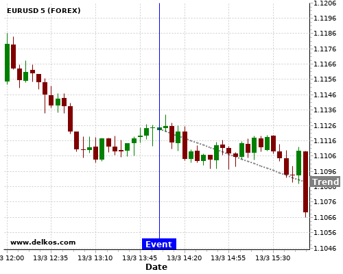 这个可能性是根据最近12次公布US Michigan Consumer Sentiment Prel数据得出的,12次中有7次真实数据大于专家预期,这其中有6次导致EURUSD下跌。