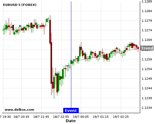如果该数据等于专家预期,那么EURUSD在消息公布之后的四小时内,将有75%的可能性会上涨。