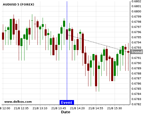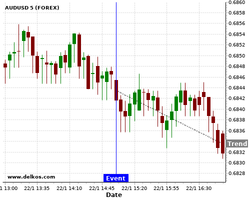 这个可能性是根据最近12次公布US Existing Home Sales数据得出的,12次中有6次真实数据大于专家预期,这其中有5次导致AUDUSD下跌。