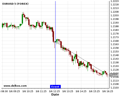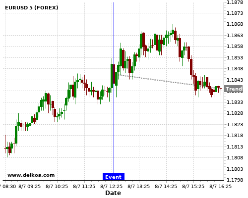如果该数据大于专家预期,那么EURUSD在消息公布之后的四小时内,将有85.71%的可能性会下跌。
