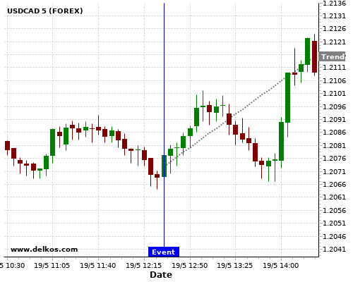 这个可能性是根据最近12次公布CA Inflation Rate YoY数据得出的,12次中有7次真实数据大于专家预期,这其中有5次导致USDCAD上涨。