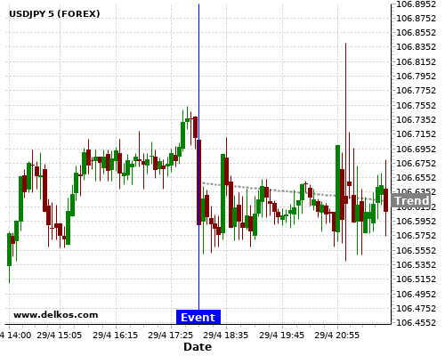 如果该数据等于专家预期,那么USDJPY在消息公布之后的四小时内,将有75%的可能性会下跌。