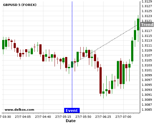这个可能性是根据最近12次公布FR GDP Growth Rate QoQ Prel数据得出的,12次中有6次真实数据小于专家预期,这其中有3次导致GBPUSD上涨。