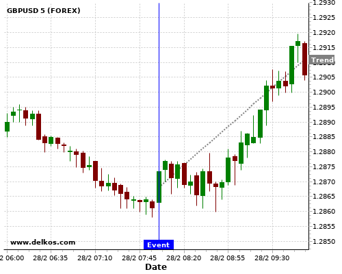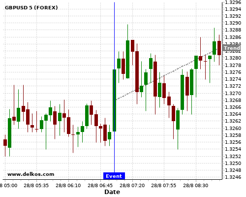 这个可能性是根据最近12次公布CH KOF Leading Indicators数据得出的,12次中有7次真实数据大于专家预期,这其中有5次导致GBPUSD上涨。