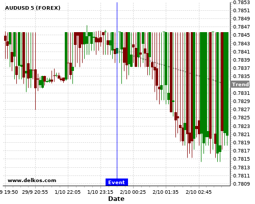 如果该数据大于专家预期,那么AUDUSD在消息公布之后的四小时内,将有80%的可能性会下跌。