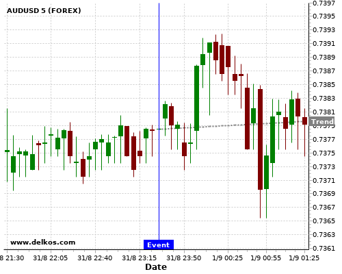 如果该数据小于专家预期,那么AUDUSD在消息公布之后的四小时内,将有83.33%的可能性会上涨。