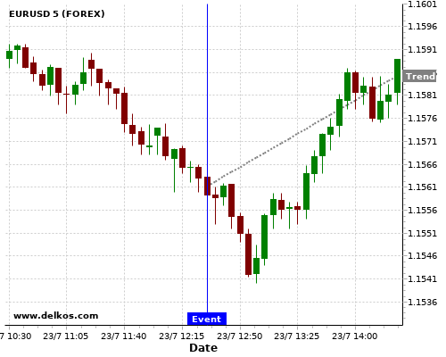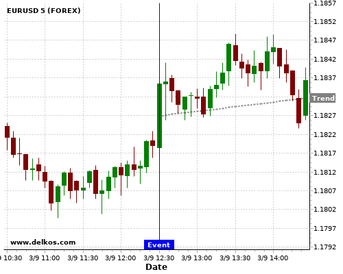 如果该数据小于专家预期,那么EURUSD在消息公布之后的四小时内,将有87.5%的可能性会上涨。