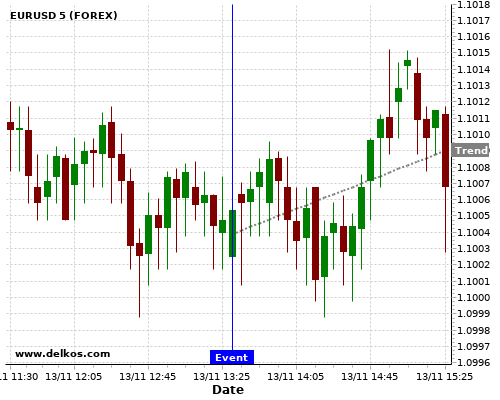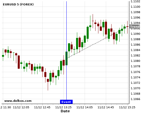 这个可能性是根据最近12次公布US Inflation Rate YoY数据得出的,12次中有6次真实数据大于专家预期,这其中有4次导致EURUSD上涨。