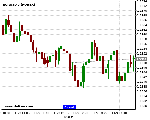 如果该数据大于专家预期,那么EURUSD在消息公布之后的四小时内,将有83.33%的可能性会上涨。