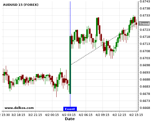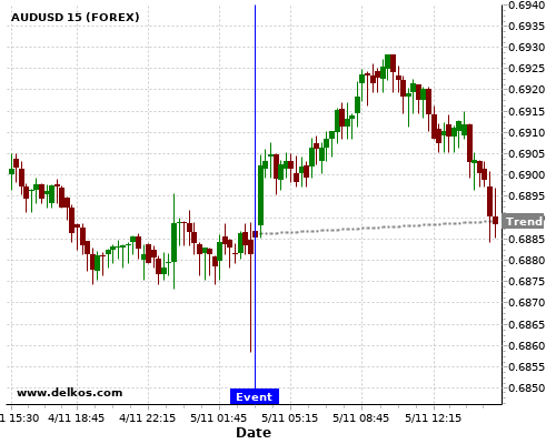 这个可能性是根据最近12次公布AU RBA Interest Rate Decision数据得出的,12次中有11次真实数据等于专家预期,这其中有8次导致AUDUSD上涨。