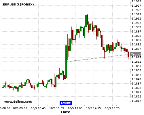 如果该数据大于专家预期,那么EURUSD在消息公布之后的四小时内,将有75%的可能性会上涨。
