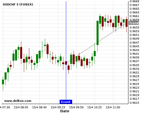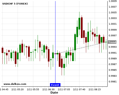 这个可能性是根据最近12次公布CH Consumer Confidence数据得出的,12次中有7次真实数据小于专家预期,这其中有6次导致USDCHF上涨。
