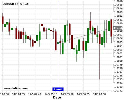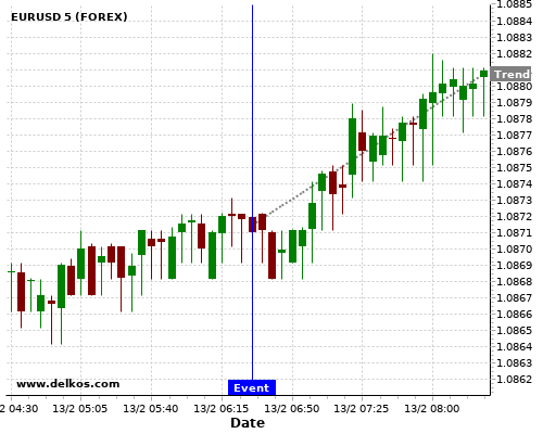 这个可能性是根据最近12次公布FR Unemployment Rate数据得出的,12次中有9次真实数据小于专家预期,这其中有7次导致EURUSD上涨。