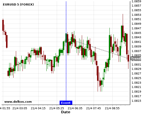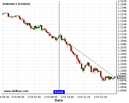 如果该数据小于专家预期,那么EURUSD在消息公布之后的四小时内,将有85.71%的可能性会下跌。
