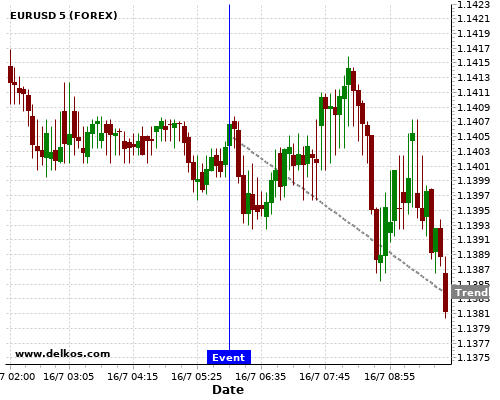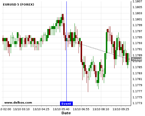 这个可能性是根据最近12次公布GB Claimant Count Change数据得出的,12次中有7次真实数据小于专家预期,这其中有6次导致EURUSD下跌。