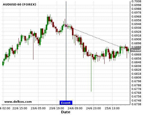 这个可能性是根据最近12次公布NZ Interest Rate Decision数据得出的,12次中有9次真实数据等于专家预期,这其中有7次导致AUDUSD下跌。