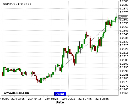 如果该数据等于专家预期,那么GBPUSD在消息公布之后的四小时内,将有75%的可能性会上涨。