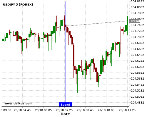 这个可能性是根据最近12次公布DE Markit Manufacturing PMI Flash数据得出的,12次中有9次真实数据大于专家预期,这其中有7次导致USDJPY上涨。