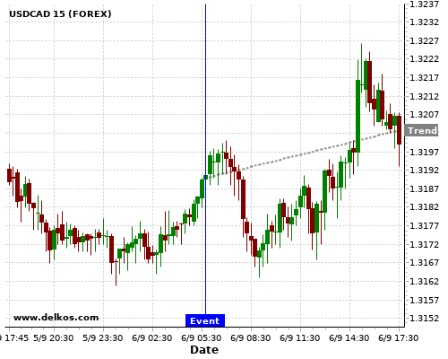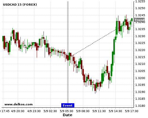 如果该数据大于专家预期,那么USDCAD在消息公布之后的四小时内,将有75%的可能性会上涨。