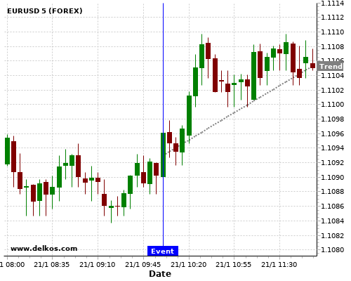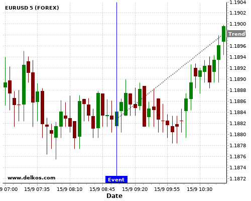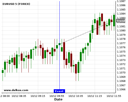 这个可能性是根据最近12次公布DE ZEW Economic Sentiment Index数据得出的,12次中有7次真实数据大于专家预期,这其中有5次导致EURUSD上涨。