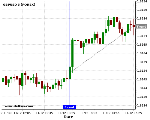 这个可能性是根据最近12次公布US Inflation Rate YoY数据得出的,12次中有5次真实数据大于专家预期,这其中有4次导致GBPUSD上涨。