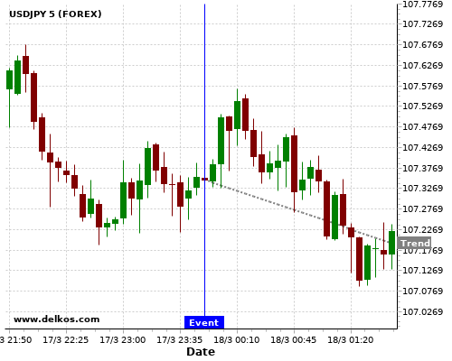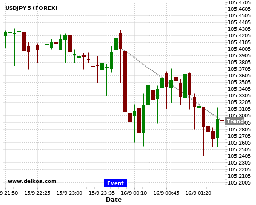 这个可能性是根据最近12次公布JP Balance of Trade数据得出的,12次中有7次真实数据大于专家预期,这其中有5次导致USDJPY下跌。