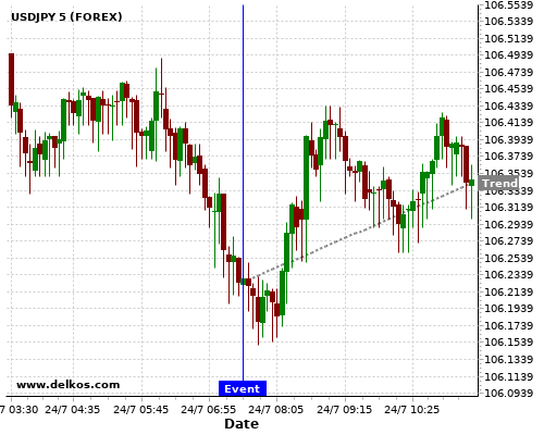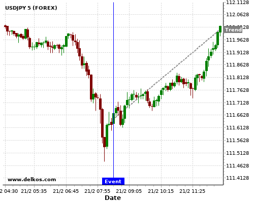 这个可能性是根据最近12次公布DE Markit Manufacturing PMI Flash数据得出的,12次中有9次真实数据大于专家预期,这其中有7次导致USDJPY上涨。
