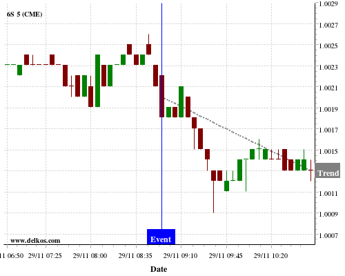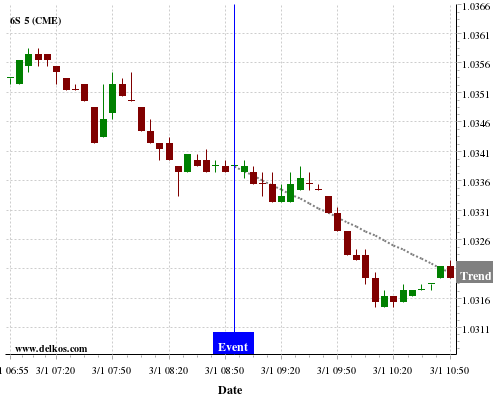 If the number is equal to than economists’ consensus there is a 70% probability that 6S will trend down following the news event.