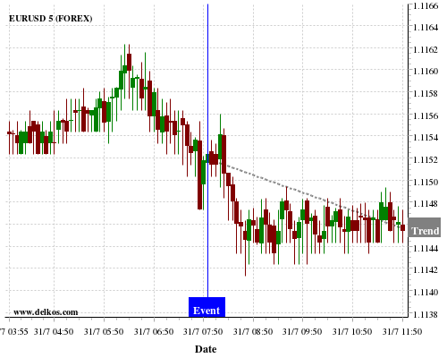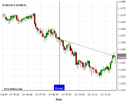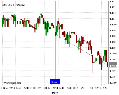 If the number is equal to than economists’ consensus there is a 70% probability that EURUSD will trend down following the news event.