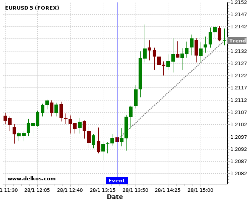 If the number is less than than economists’ consensus there is a 70% probability that EURUSD will trend up following the news event.
