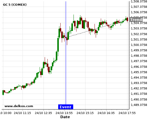 If the number is greater than than economists’ consensus there is a 70% probability that GC will trend up following the news event.