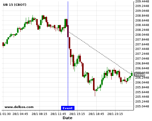If the number is less than than economists’ consensus there is a 70% probability that UB will trend down following the news event.
