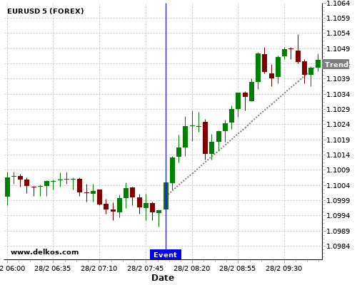 Если показатель Выше чем консенсус экономистов существует 71.42% вероятность того, что EURUSD будет расти после новостного события.