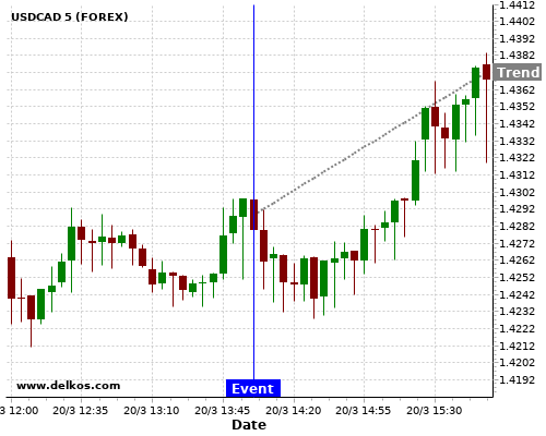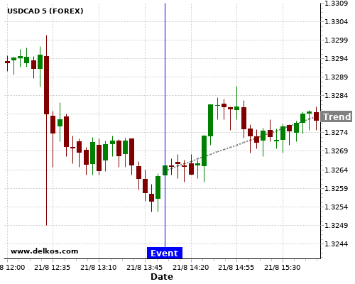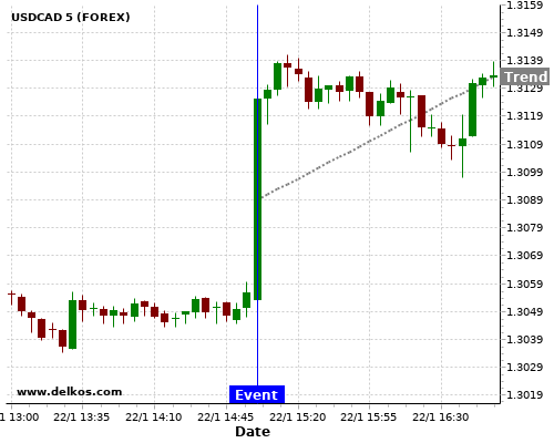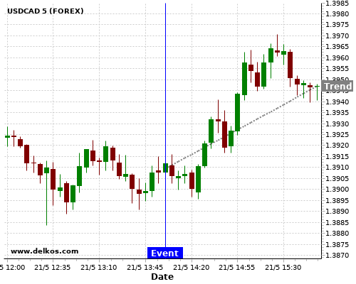 Если показатель Выше чем консенсус экономистов существует 71.42% вероятность того, что USDCAD будет расти после новостного события.