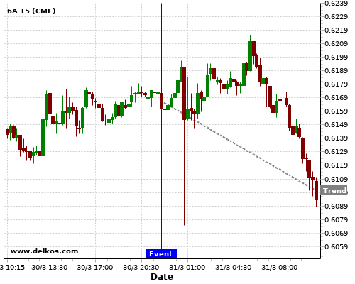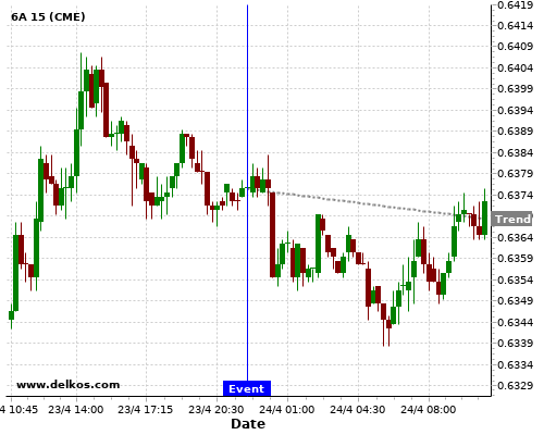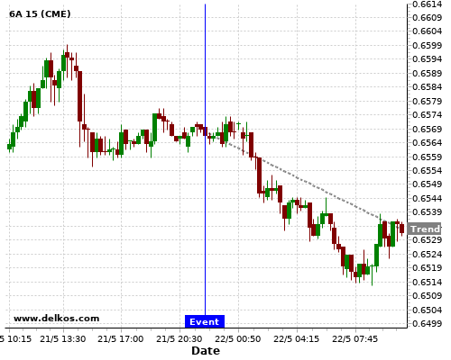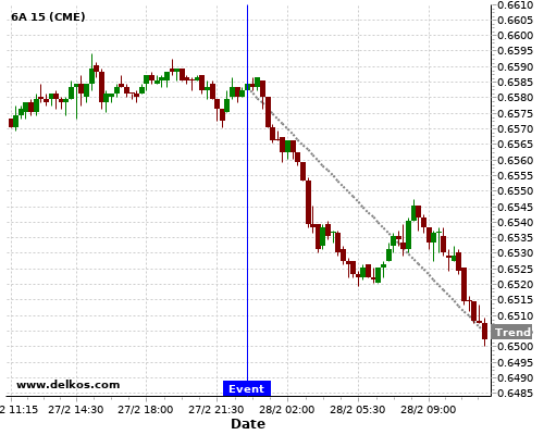 If the number is greater than than economists’ consensus there is a 71.42% probability that 6A will trend down following the news event.