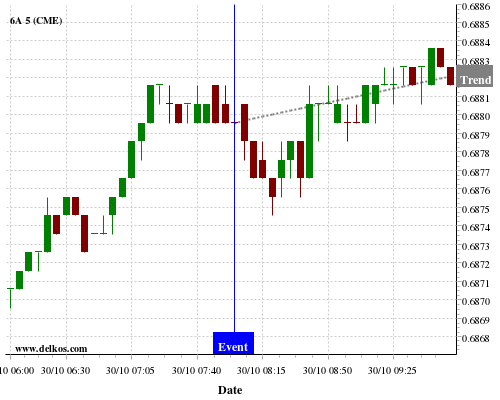If the number is greater than than economists’ consensus there is a 71.42% probability that 6A will trend up following the news event.
