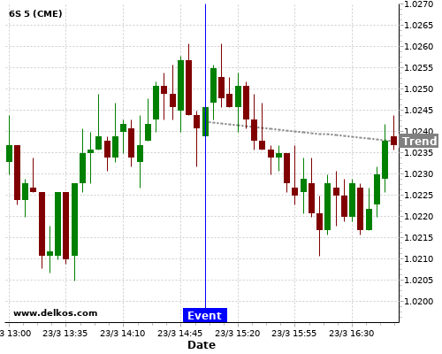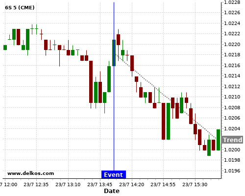 If the number is greater than than economists’ consensus there is a 71.42% probability that 6S will trend down following the news event.