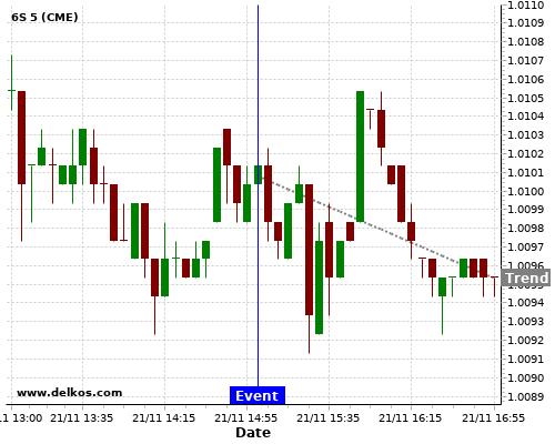 This probability is based on the last 12 EMU Consumer Confidence Flash events, in which 5 of the last 7 events where the actual number was greater than than the economist consensus resulted in an down trend of 6S.